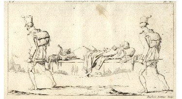 C’est un ensemble formé par 2 barres de bois à travers laquelle on tends une toile. Le brancard sert à soulever et à transporter des objets lourds ou dans le cas présent des personnes. C’est le matériel phare des 1ers secours, des ambulances et de l’urgence. Les Dr François Percy et Dr Dominique Larrey sous l’empire de Napoléon furent les 1er à monter des brancards sur des chameaux pour transporter des blessés sur les champs de bataille. Il a ensuite converti son système dans des voitures hippomobiles. Ce fut les 1ère ambulances.